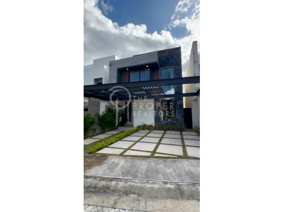 Todos los pisos son de mármol travertino veteado, 5.5 baños, 2 terrazas, estacionamiento pergolado para 3 autos, 7 aires acondicionados LG doble inverter, muro decorativo de triple altura forrado en mármol negro, construcción a prueba de huracanes y terremotos.